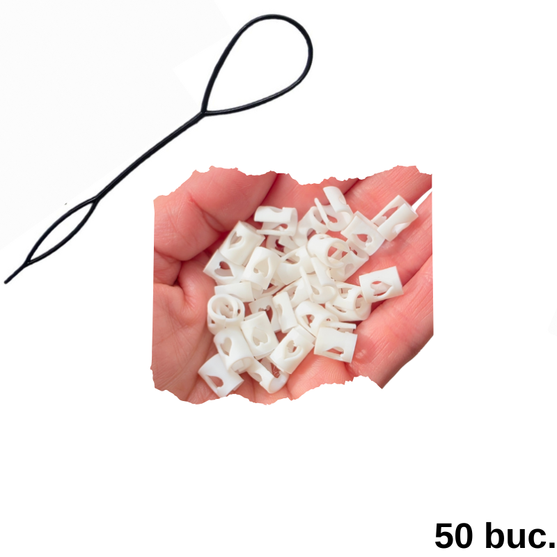 - 1 aplicator special, pentru montare rapidă și fără deteriorarea firului de păr