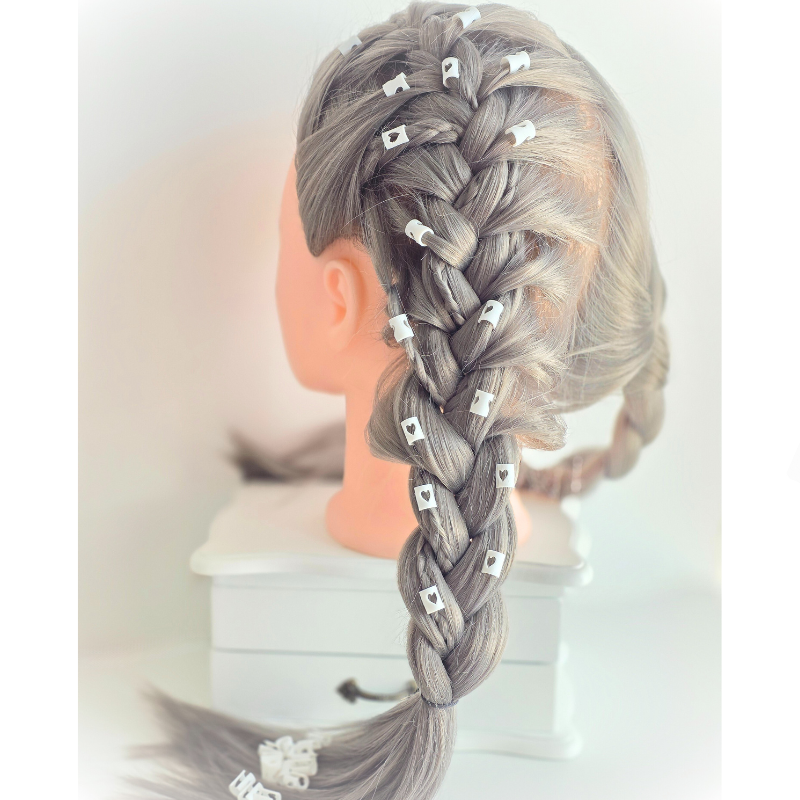 HeartClip – Set inele păr albe adaugă un plus de stil, culoare și originalitate look-urilor tale cu setul de 50 inele de păr albe, realizate din PLA biodegradabil pe bază de plante. Ușoare, sigure și extrem de versatile, aceste inele sunt perfecte pentru împletituri, dreadlocks, extensii, cozi sau styling festiv.