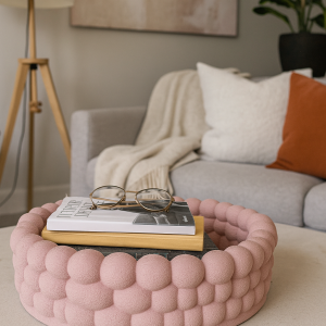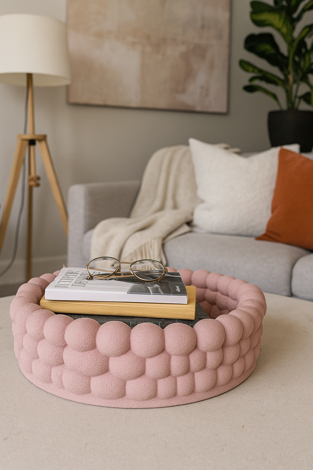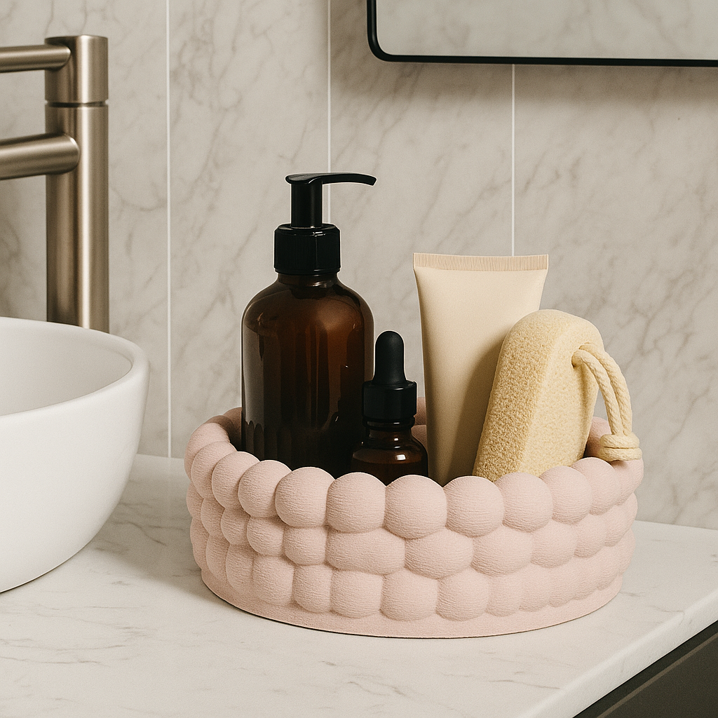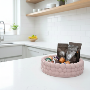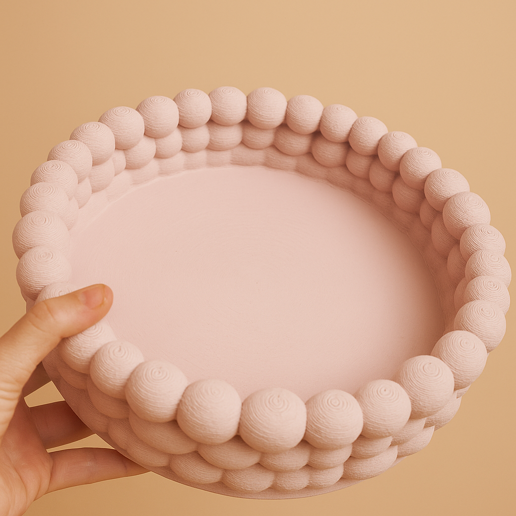 Luna se remarcă prin designul său sculptural. Marginile sunt formate din bule proeminente. 🫧 Acestea sunt create cu precizie prin imprimarea 3D. Textura adaugă volum și profunzime. Culoarea roz pudrat este caldă și elegantă. 🎀 Se integrează ușor în orice stil. Luna este mai mult decât un simplu suport. Este un element central de design. Forma rotundă sugerează armonie. 💫