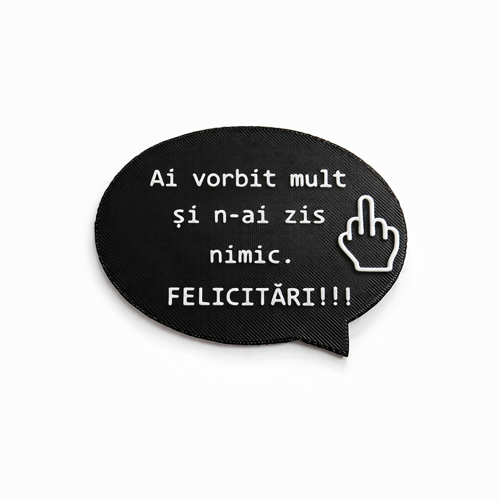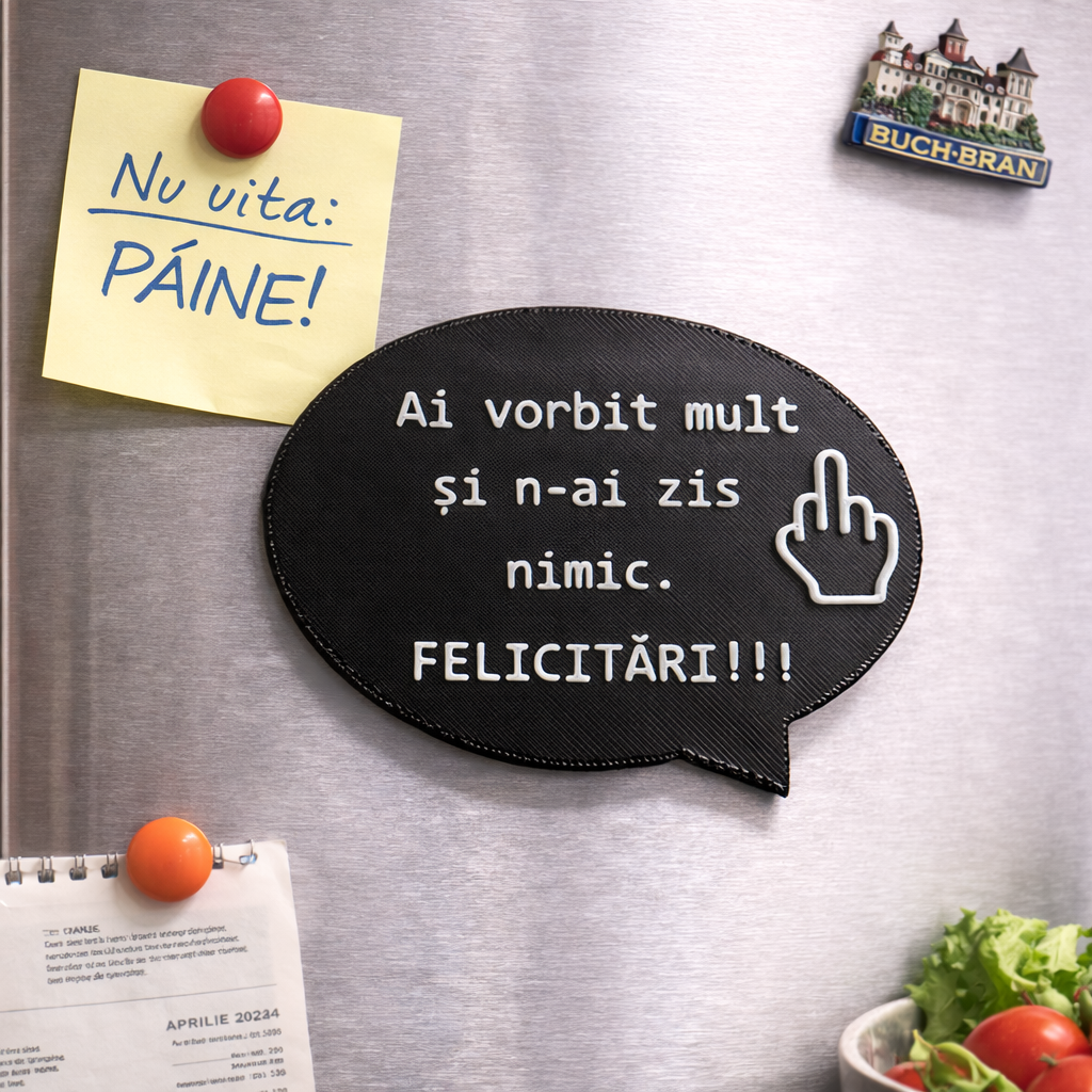 Un mesaj perfect pentru situațiile în care discuțiile lungi nu duc nicăieri. Un magnet amuzant pentru cei care apreciază replicile directe.