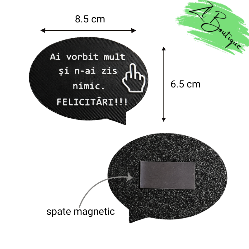 Acești magneți sunt creați pentru cei care înțeleg sarcasmul fără explicații. Mesaje scurte, tăioase și foarte reale, inspirate din situații pe care le trăim zilnic – la muncă, acasă sau cu oamenii care “știu mai bine”.
