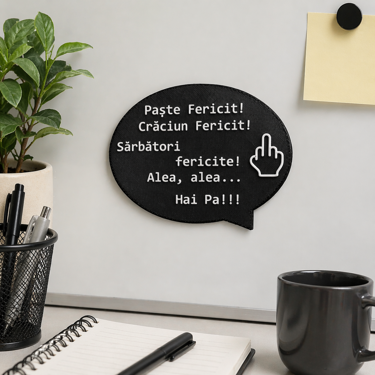 Acești magneți sunt creați pentru cei care înțeleg sarcasmul fără explicații. Mesaje scurte, tăioase și foarte reale, inspirate din situații pe care le trăim zilnic – la muncă, acasă sau cu oamenii care “știu mai bine”.